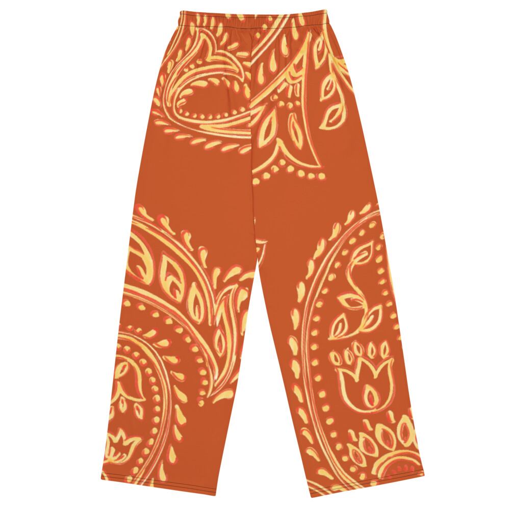 オレンジカラーでペイズリー柄のワイドパンツが登場!